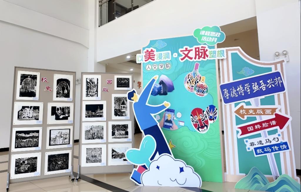 现场设置的核心展区内,四大主题作品群构筑成流动的“美育思政课堂”。“美育是无声的思政,文脉是永恒的根基。”人文学院院长曹景萍表示,这种创作理念与我校课程思政建设思路高度契合,彰显我校特色鲜明的育人体系。